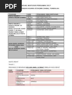 Jadual Bertugas Pengawas 2017 Pdf